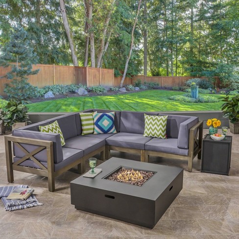 Culatra 7pc Acacia Sectional Sofa Set With Fire Pit Christopher Knight Home Target