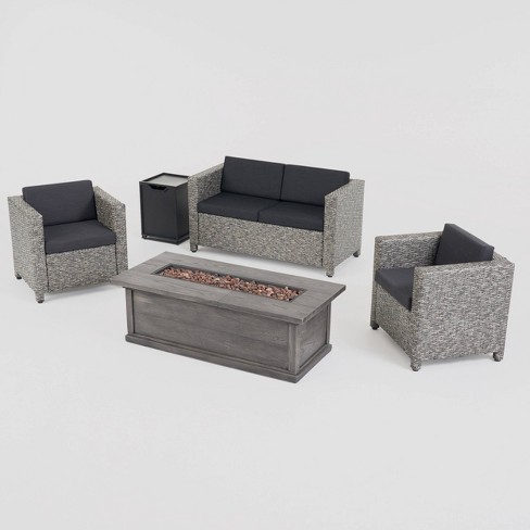 Gerhardt 5pc Wicker Chat Set With Fire Pit Mix Black Dark Gray Christopher Knight Home Target